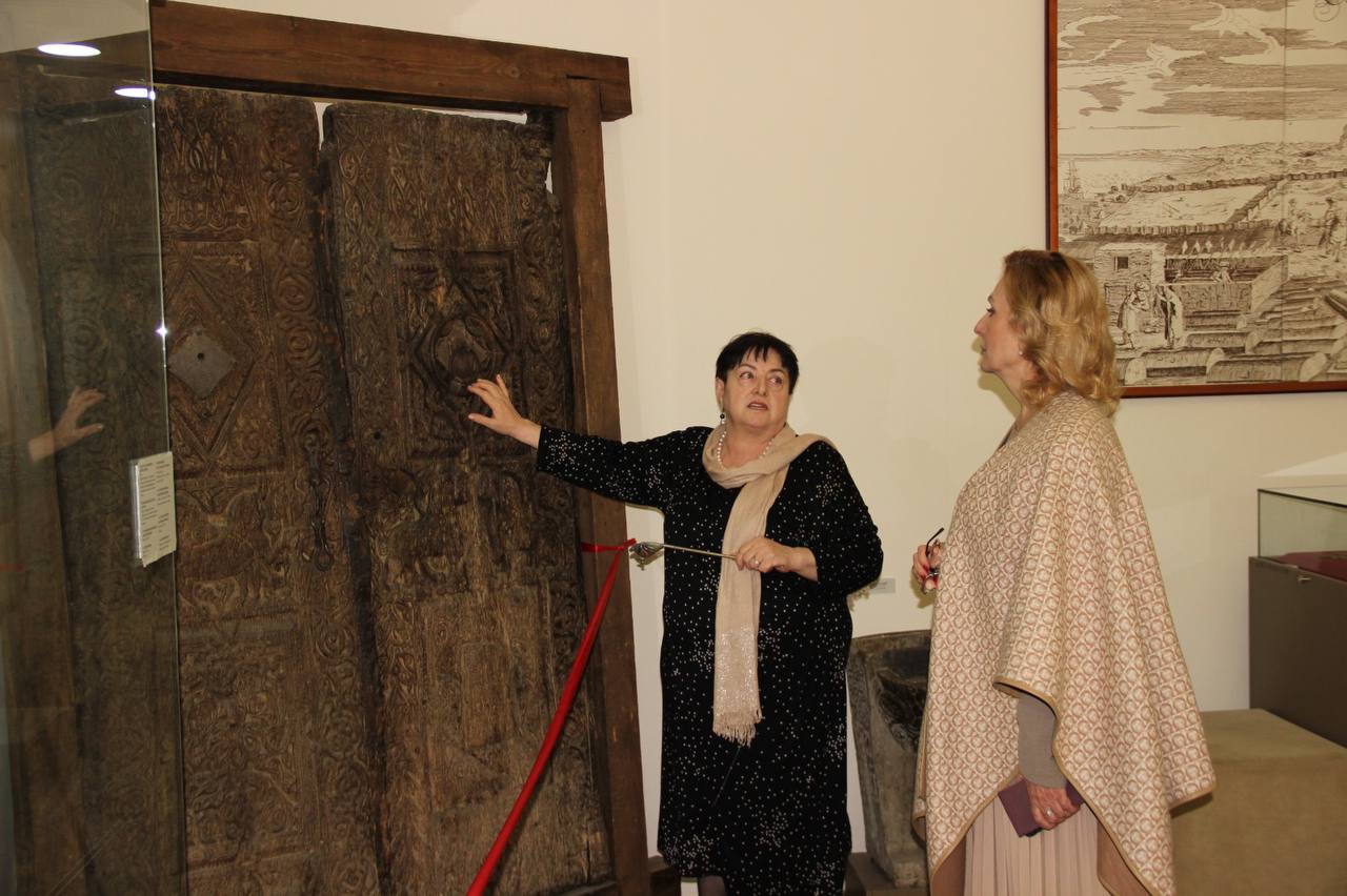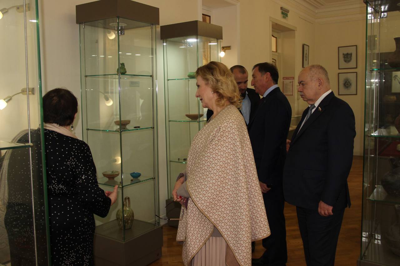 Гости осмотрели богатую археологическую экспозицию, их внимание привлекли сабля великого завоевателя Тамерлана и собрание артефактов времен Кавказской войны.
