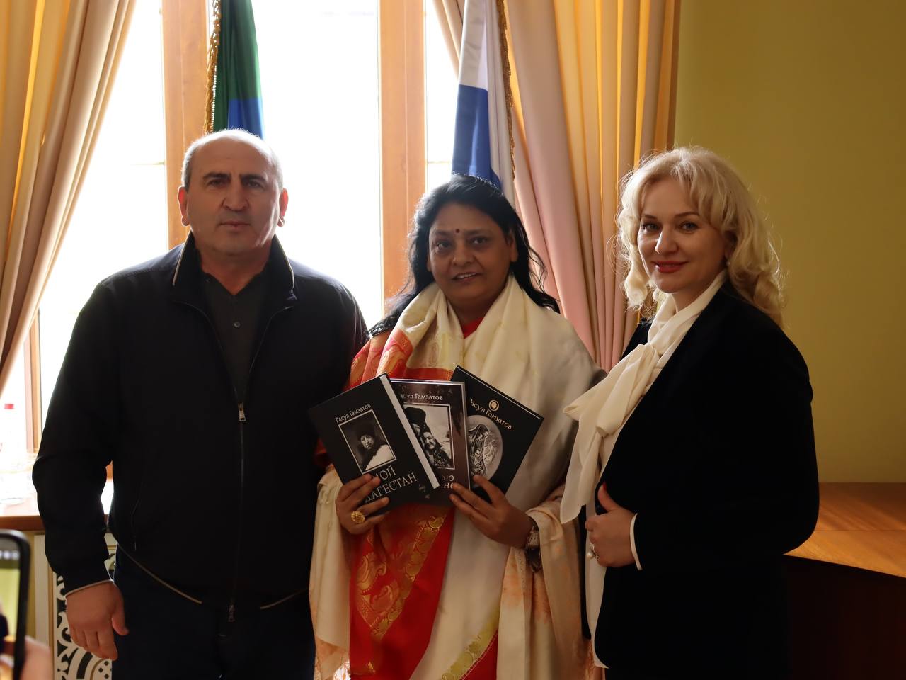 В составе делегации - президент международного форума стран БРИКС Пурнима Ананд, заместитель Председателя Совета Федерации Инна Святенко, первый заместитель председателя Комитета Совета Федерации по науке, образованию и культуре Ильяс Умаханов, председатель Народного Собрания РД Заур Аскендеров, министр культуры Дагестана Зарема Бутаева.