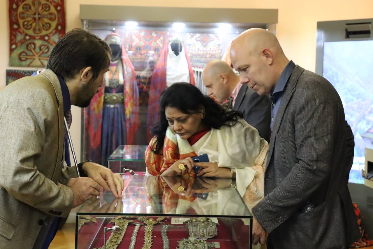 Особый интерес вызвала этнографическая коллекция музея, где представлены уникальные национальные наряды и старинные серебряные украшения народов Страны Гор.