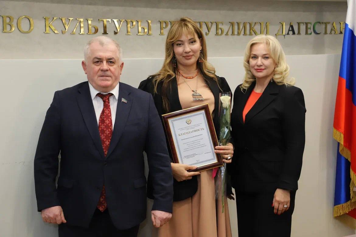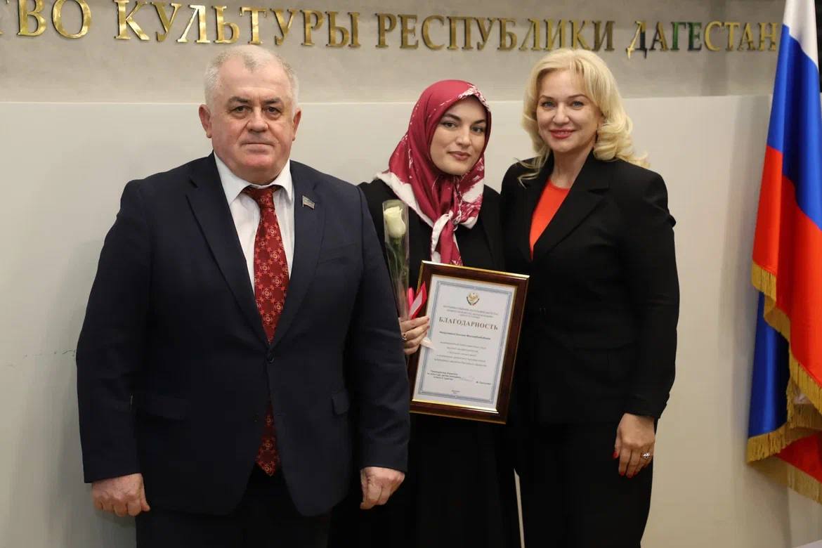 Награды вручили министр культуры Дагестана Зарема Бутаева и председатель комитета Народного Собрания по культуре, делам молодежи, спорту и туризму Марат Пайзулаев.