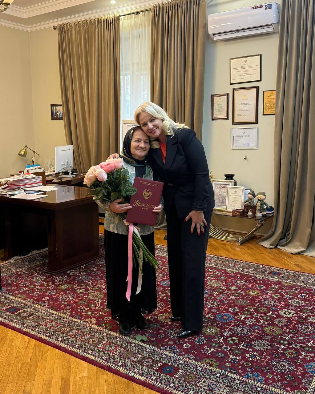 «Ваш вклад в эстетическое воспитание подрастающего поколения, развитие детского творчества невозможно переоценить. Вы – директор с большим сердцем, подаривший детям свой дом, чтобы в нем звучали музыка и смех. Спасибо за уютную школу, куда дети идут с радостью, за энтузиазм – это яркий пример безграничной преданности делу, высокой ответственности и истинной любви к детям и искусству!», - подчеркнула министр.