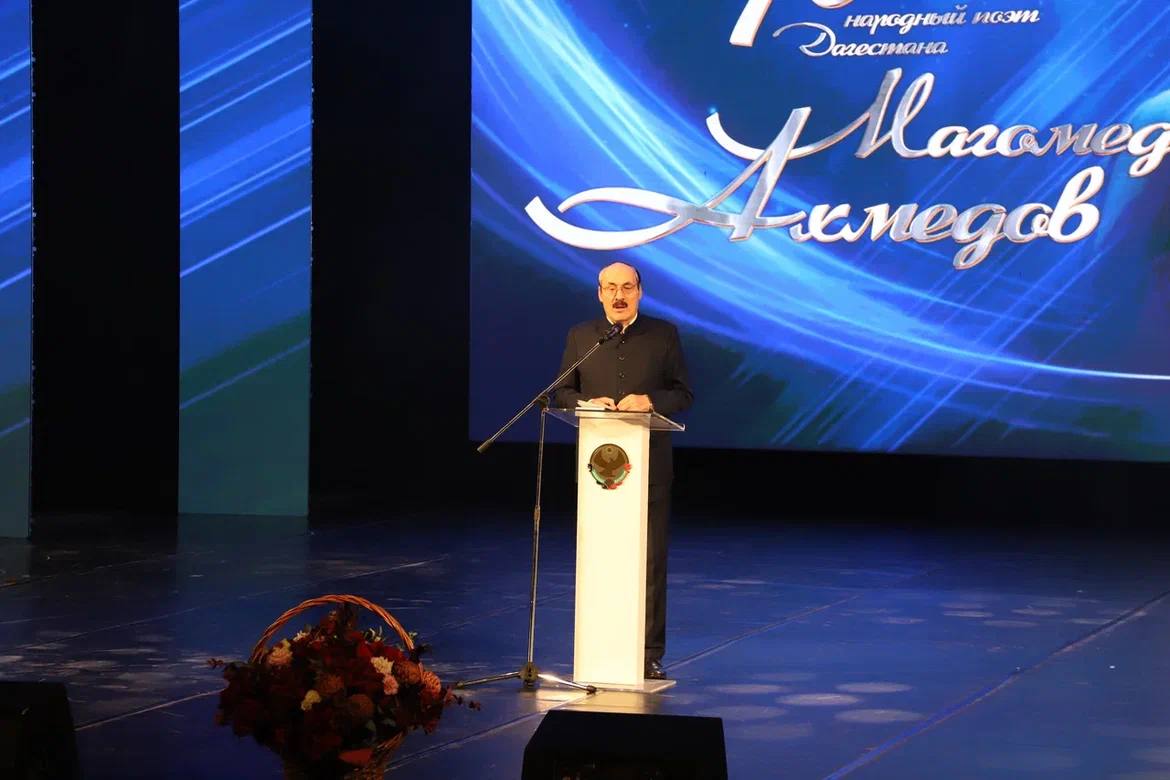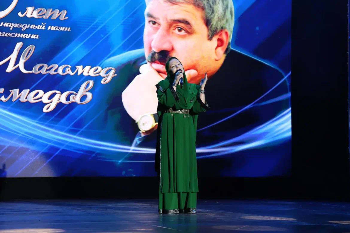 Вечер продолжился музыкально-поэтической композицией, построенной на произведениях Магомеда Ахмедова. Это рассказ о детстве, проведенном в горах, судьбоносной встрече с поэтами Магомедом Сулимановым и Омар-Гаджи Шахтамановым, пути в большую литературу. В рамках программы прозвучали стихи поэта на русском и аварском языках, песни на слова поэта на языках народов Дагестана, произведения дагестанских композиторов. С танцевальными номерами выступили хореографические коллективы республики.