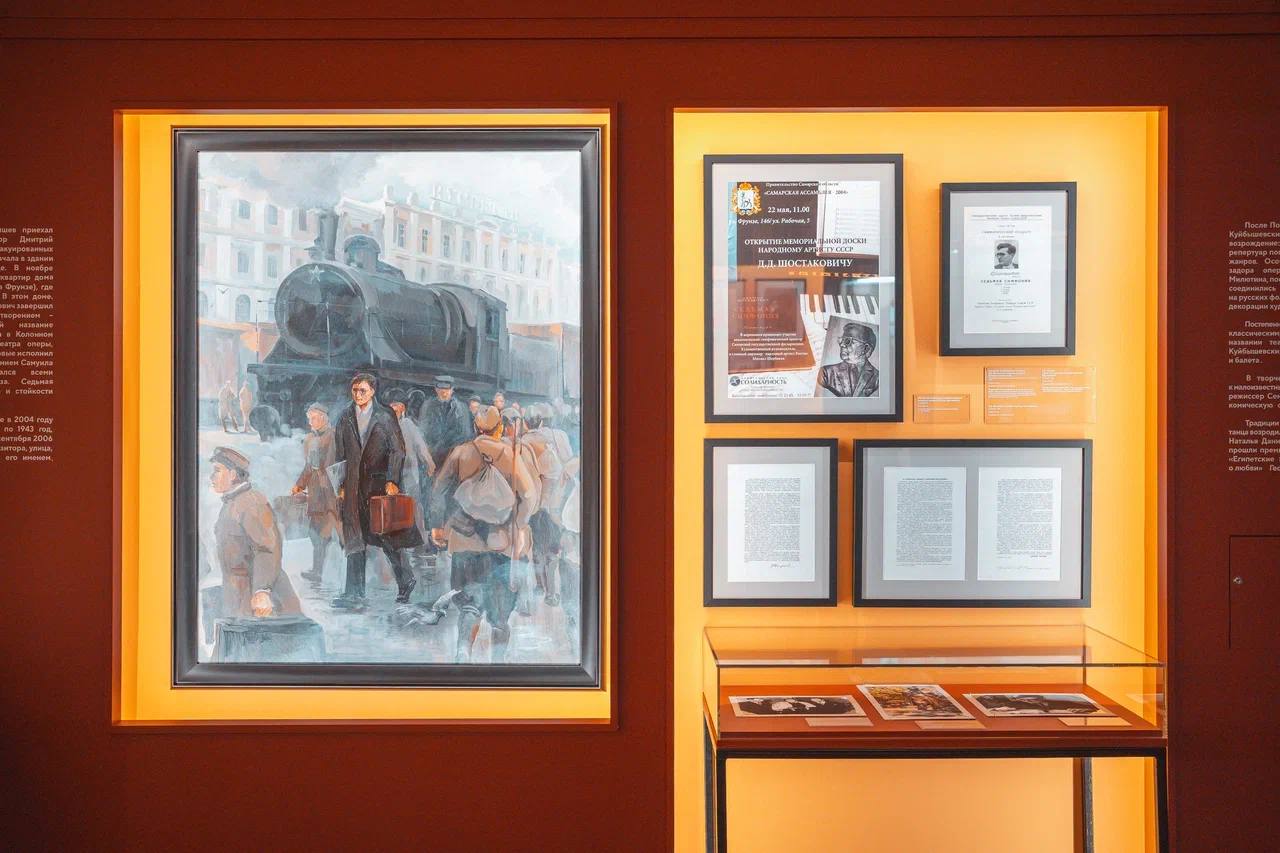 В экспозиции исторические фотоматериалы и эскизы костюмов соединяются с макетами декораций и звуковыми инсталляциями. Особый раздел рассказывает военную историю Самары, когда в Куйбышев, запасную столицу Союза, были эвакуированы правительство, дипломатический корпус, а также коллектив Большого театра. В эвакуации Дмитрий Шостакович завершил работу над легендарной Седьмой («Ленинградской») симфонией. Впервые она прозвучала здесь, на сцене Самарского театра, который сегодня носит имя композитора.