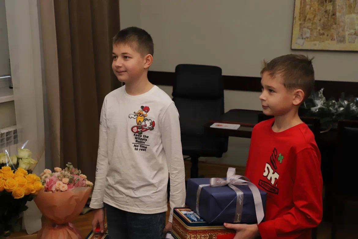 Министр культуры поздравила ребят с наступающим Новым годом, пожелала творческого развития, хорошей учебы и вырасти достойными гражданами своей малой родины и страны. Также она передала мальчикам сладкие подарки от спонсоров