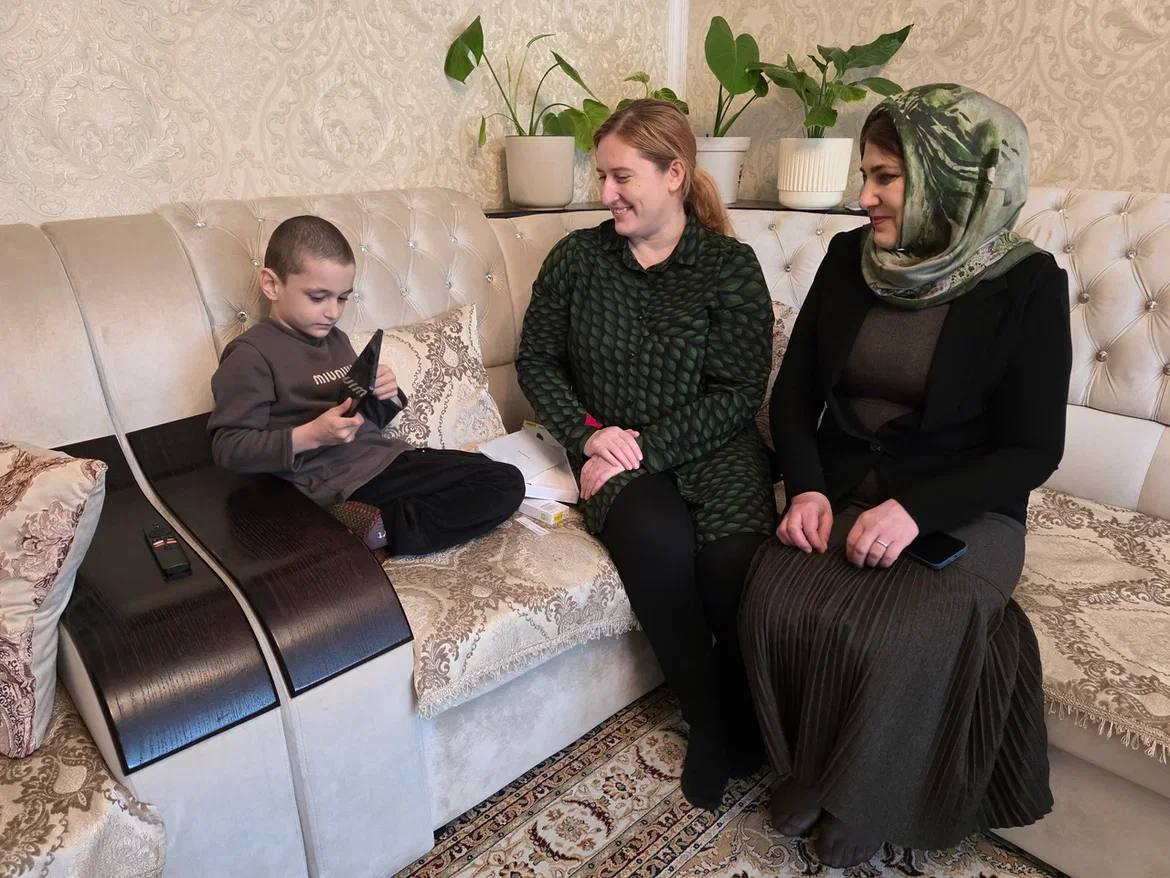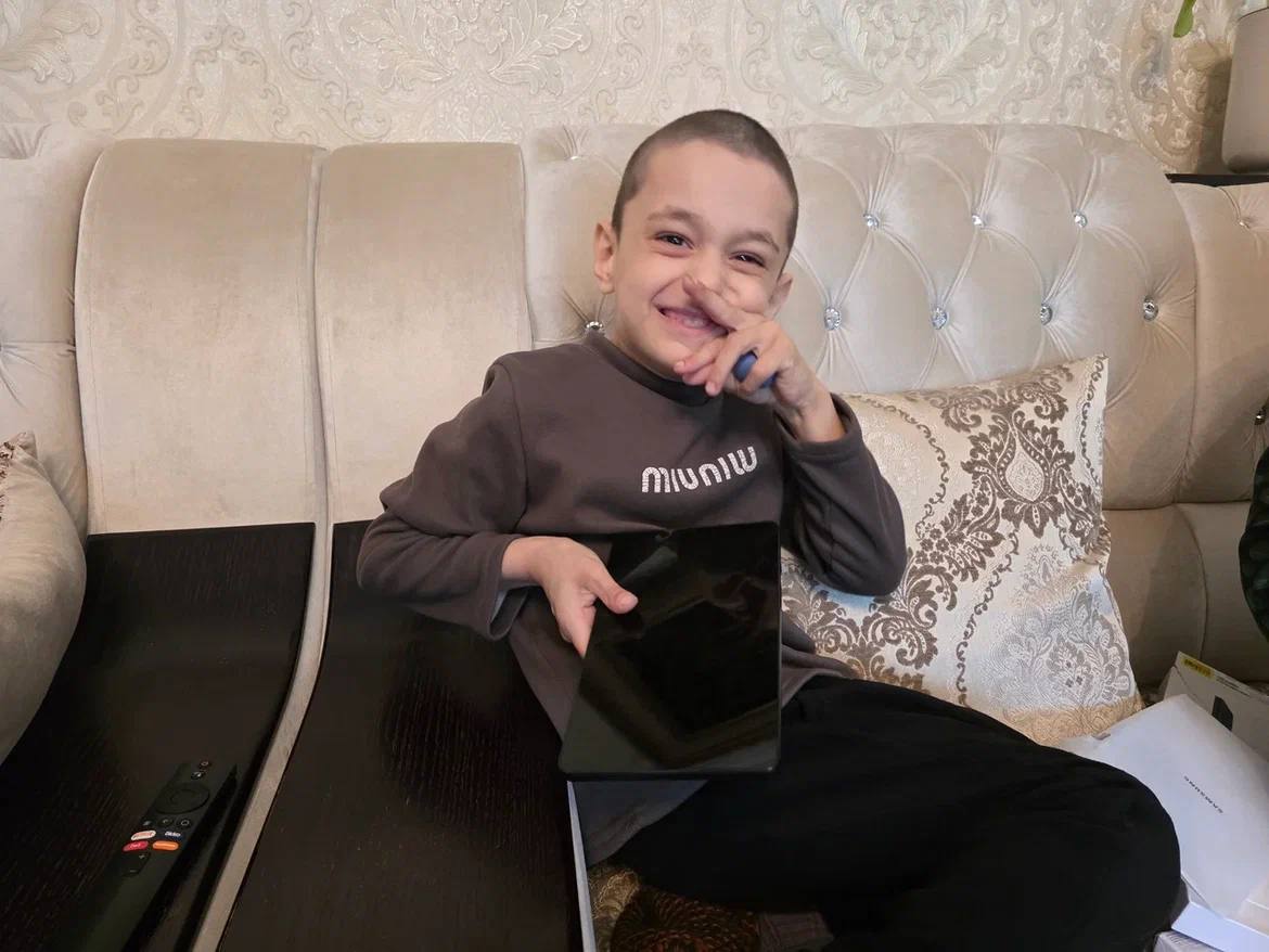 Заместитель министра Медина Джаватханова подарила 7-летнему Тимуру планшет, чтобы учиться и интереснее проводить досуг.