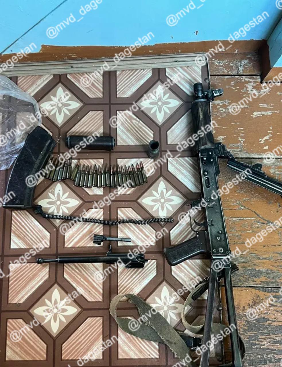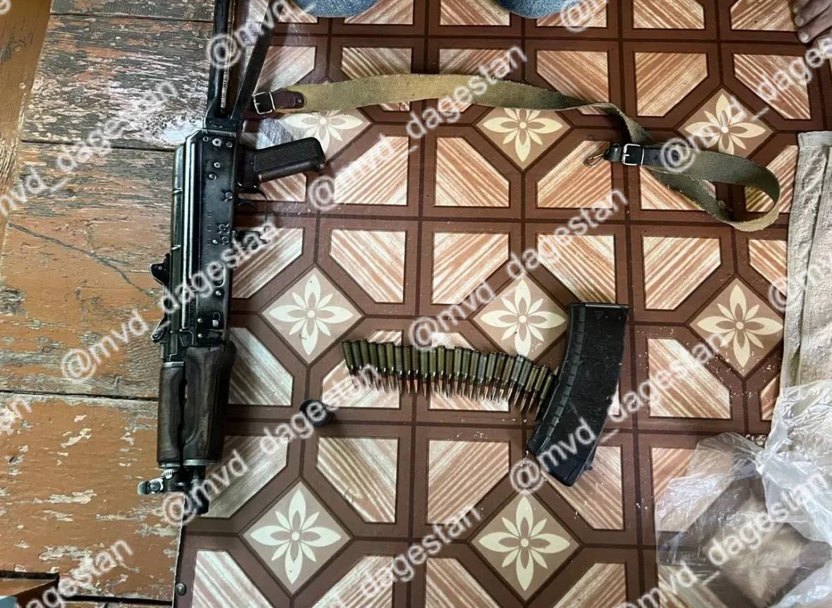 Сотрудниками Уголовного розыска Тляратинского отдела полиции в домовладении, принадлежащем 65-летнему уроженцу селения Тлярата, было обнаружено незаконно хранящееся огнестрельное оружие - автомат Калашникова, а также 25 боеприпасов к нему.