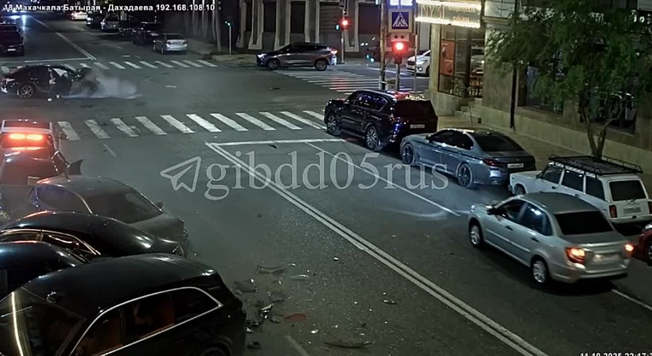 11 октября 2025 года, примерно в 22:30, в Махачкале, на перекрестке улиц Батырая и Дахадаева, 33-летний местный житель, управляя автомобилем «Lixiang L6», не предоставил преимущество в движении на перекрестке, проехав на запрещающий сигнал светофора, и столкнулся с «Toyota Camry» под управлением 29-летней местной жительницы, после чего совершил наезд на припаркованные автомобили «LADA Priora», «Hyundai Solaris», «Toyota Camry» и «LADA Granta». В результате ДТП пострадавших нет.