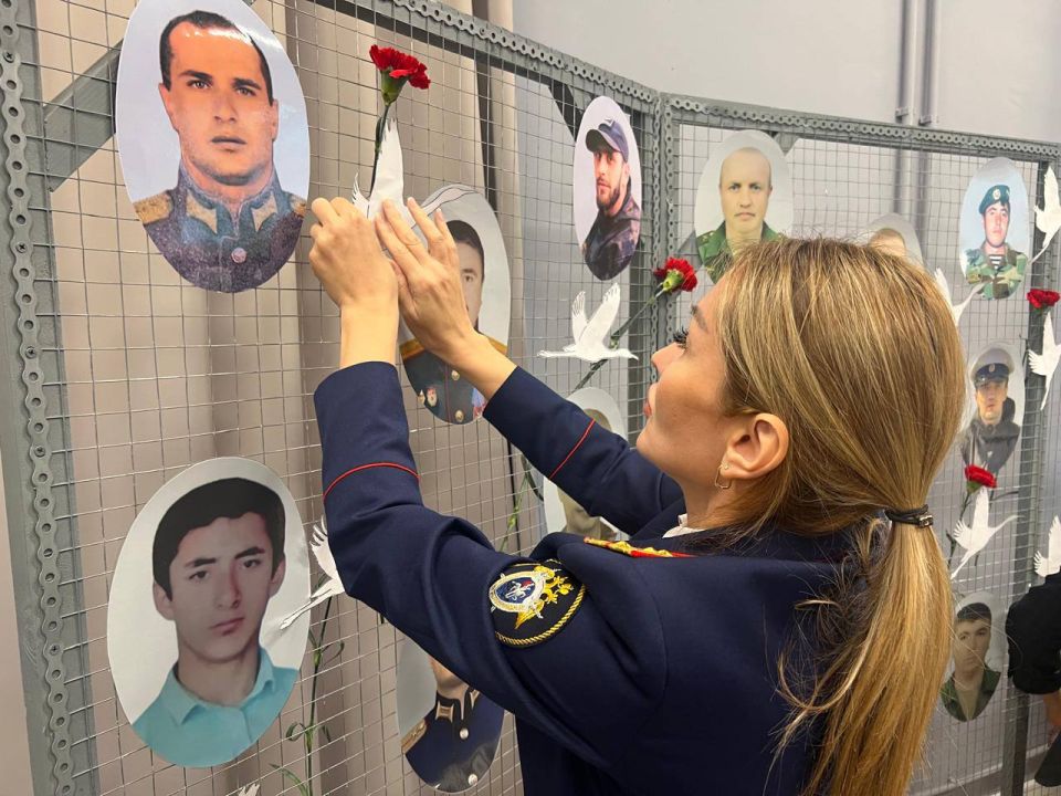 Минутой молчания школьники, педагоги и офицеры ведомства почтили память Героев Отечества.