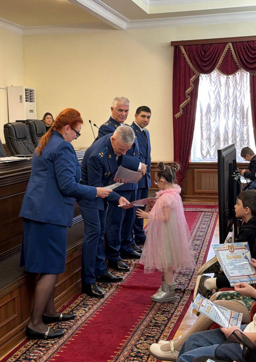 Сегодня, 29 декабря 2025 года, в прокуратуре Республики Дагестан состоялось награждение победителей творческого конкурса рисунков и поделок среди детей и внуков работников органов прокуратуры республики на тему «Зимняя сказка».