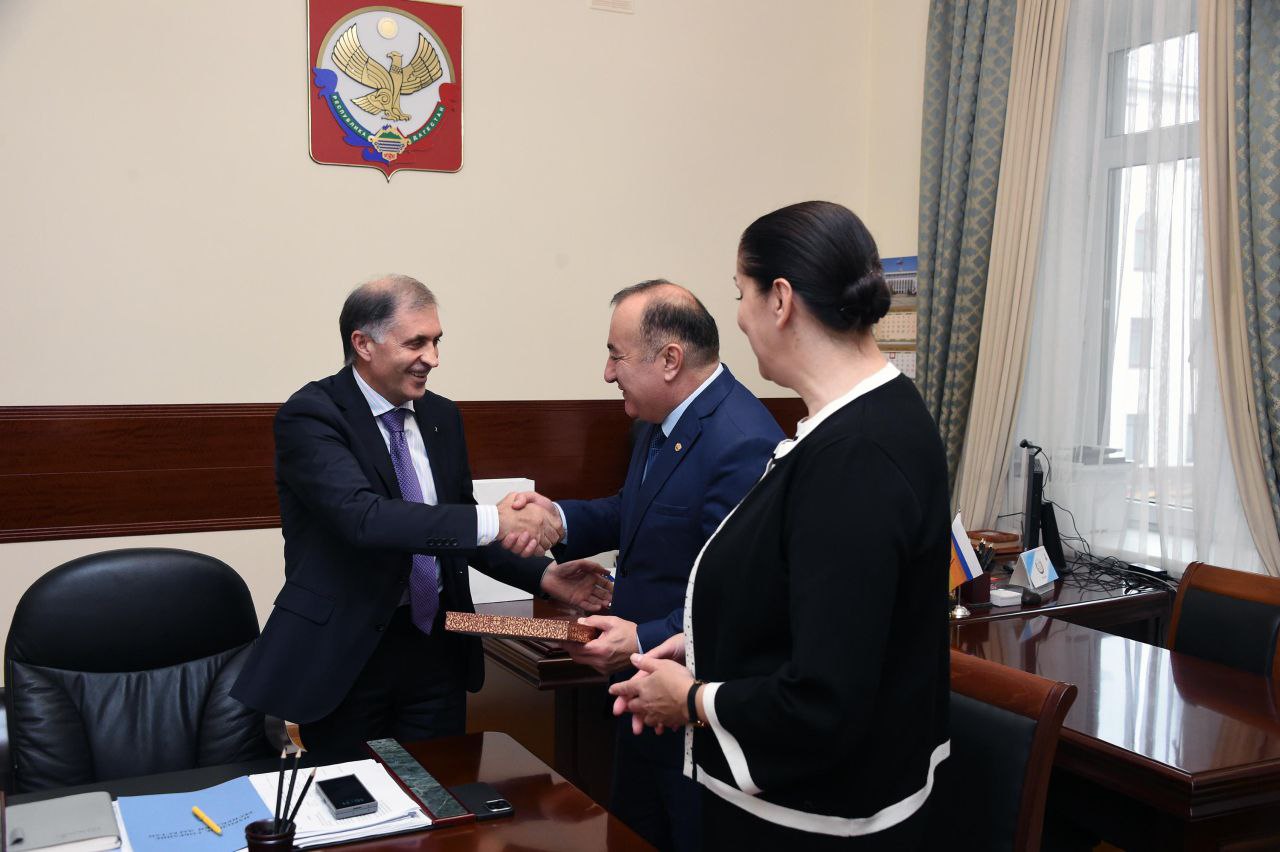 В завершение встречи Камил Давдиев, в знак уважения и признательности, по поручению Председателя Народного Собрания вручил гостям книги Расула Гамзатова "Мой Дагестан".