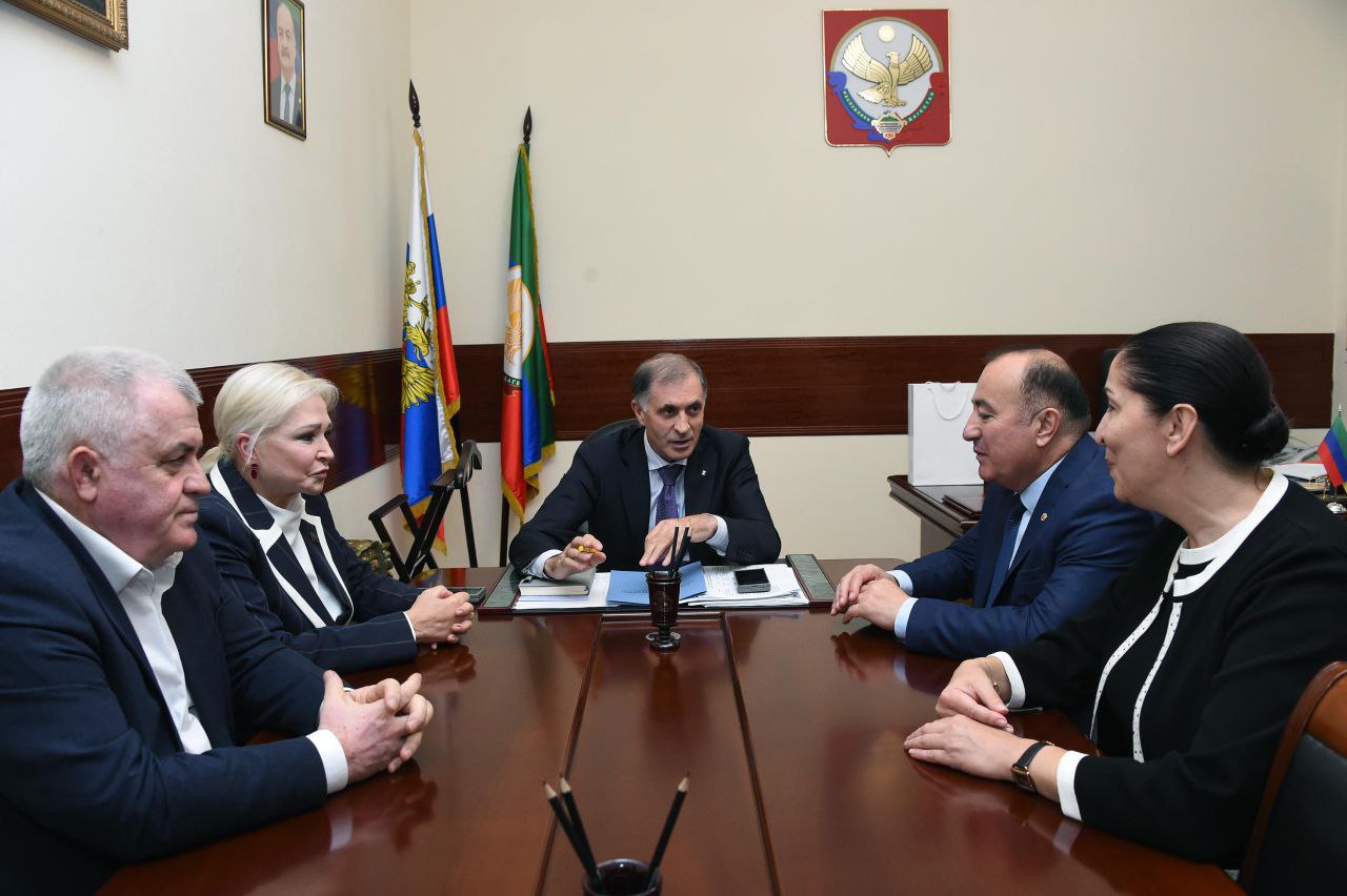 Заместитель Председателя Народного Собрания Республики Дагестан Камил Давдиев в своем рабочем кабинете встретился с депутатами Народного Совета Луганской Народной Республики Павлом Пилавовым и Жанной Марфиной.