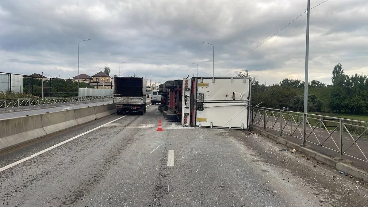 В Дербентском районе, на 917 км ФАД «Кавказ», 16 октября опрокинулась фура «Scania», груженая товаром. Из-за этого на автодороге временно ограничено движение. Об этом сообщает пресс-служба Госавтоинспекции Дагестана.