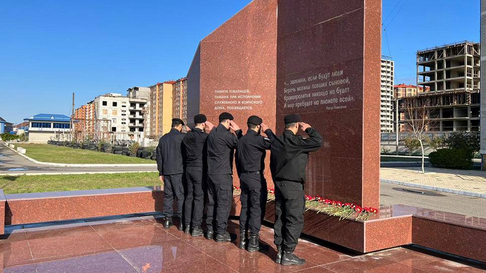 Мероприятие началось с церемонии возложения цветов к мемориалу погибшим сотрудникам отряда, после чего бойцы и приглашенные гости почтили память павших воинов минутой молчания.