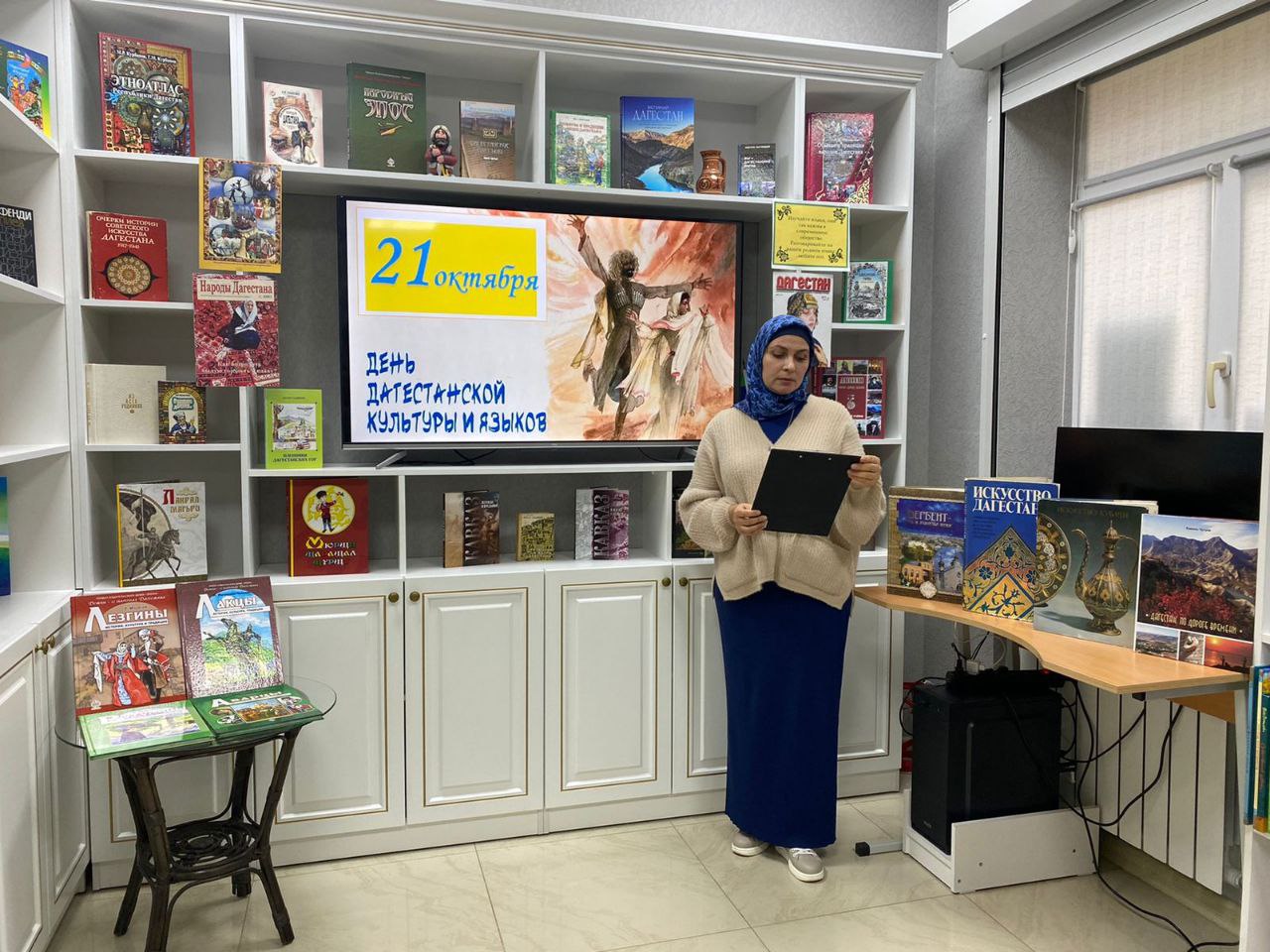 Заведующая библиотекой Заира Имамаева рассказала об истории и значении этого праздника. Особое внимание было уделено красоте нашей культуры и многообразию языков удивительной республики Дагестан – горной страны с богатейшим культурным наследием. Она отметила также живописные водопады, величественные горы, кристально чистые озера и стремительные реки, украшающие этот благодатный край. Центральное место в рассказе заняла одна из пяти древнейших мечетей мира – Джума-мечеть в Дербенте, включенная в список Всемирного наследия ЮНЕСКО. Это величественное сооружение является символом многовековой истории и духовности Дагестана.