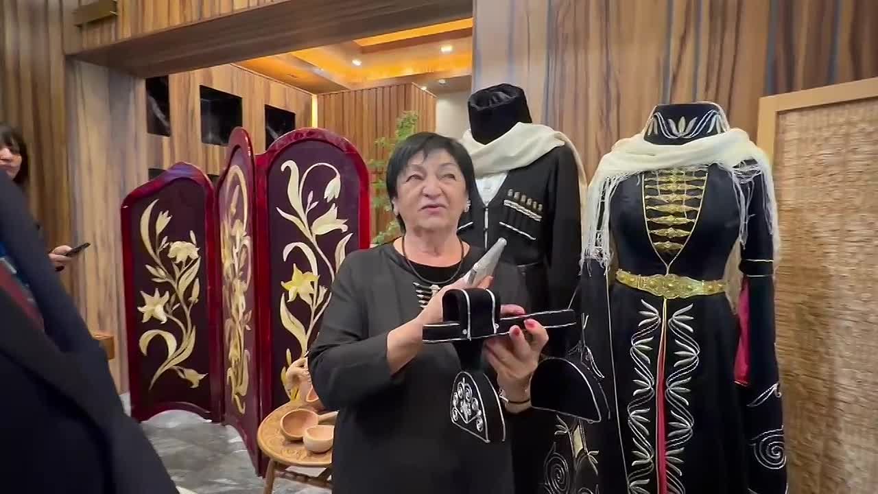 Перед началом заседания Совета СКПА Председатель Народного Собрания РД Заур Аскендеров и члены делегации парламента Дагестана осмотрели выставку прикладного искусства КЧР.