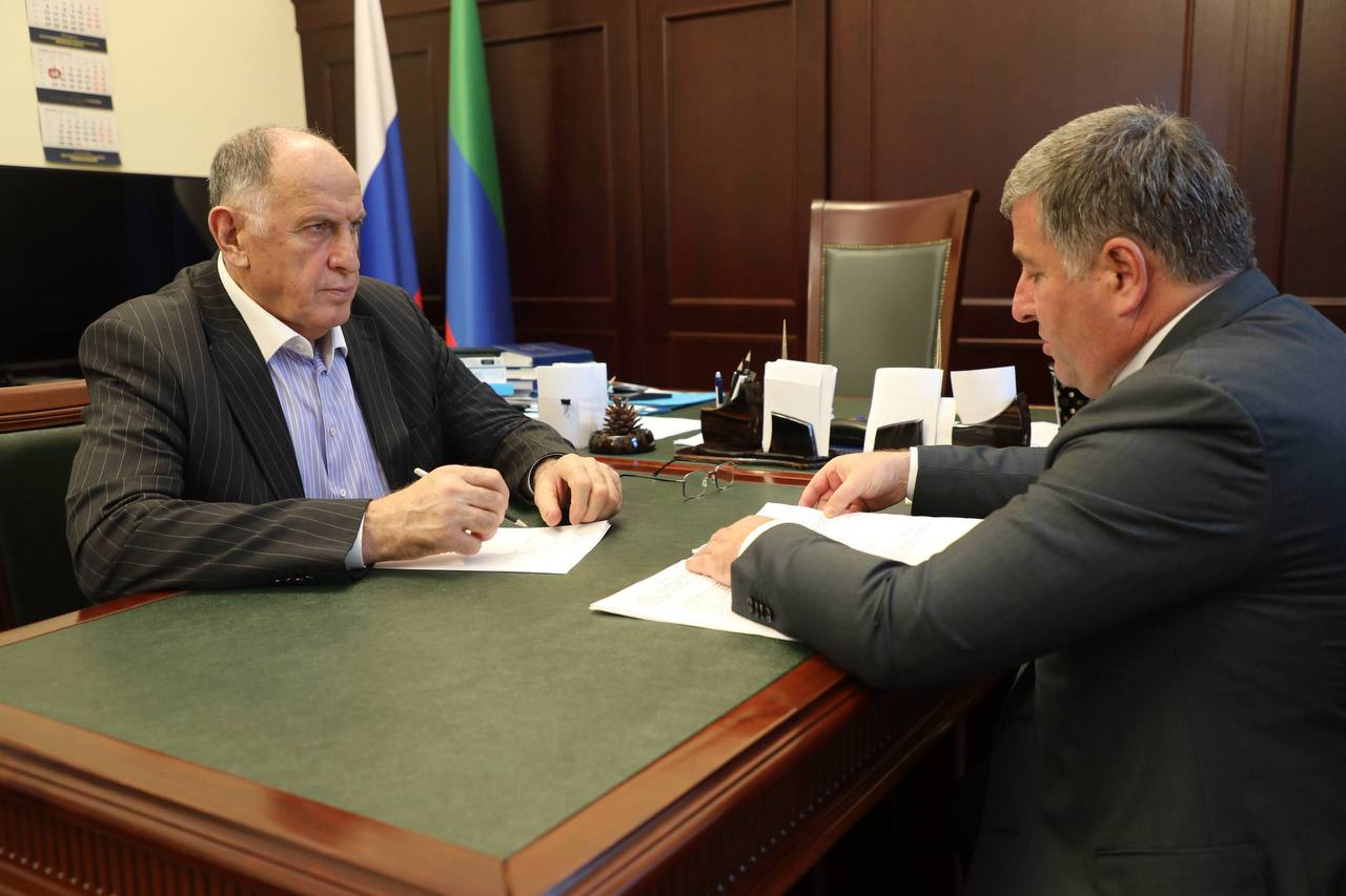 Председатель Правительства Дагестана Абдулмуслим Абдулмуслимов провел рабочую встречу с врио министра финансов республики Шамилем Дабишевым.