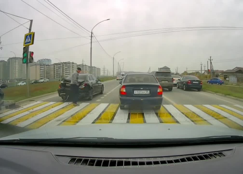 Авария при въезде в город, прямо возле пешеходки и светофора.