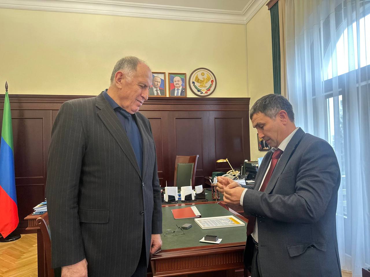 Председатель Правительства РД Абдулмуслим Абдулмуслимов провел рабочую встречу с директором Дагестанской опытной станции Всероссийского института генетических ресурсов растений имени Н.И. Вавилова Киштили Куркиевым.
