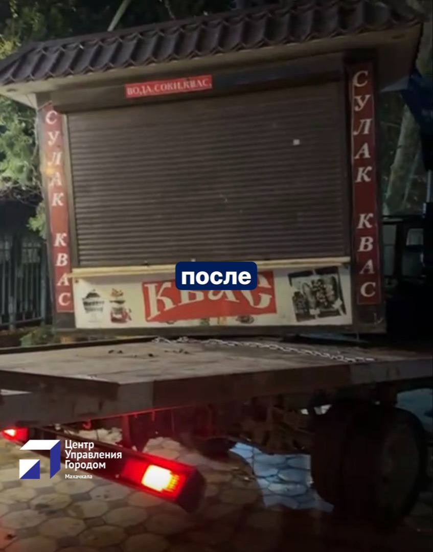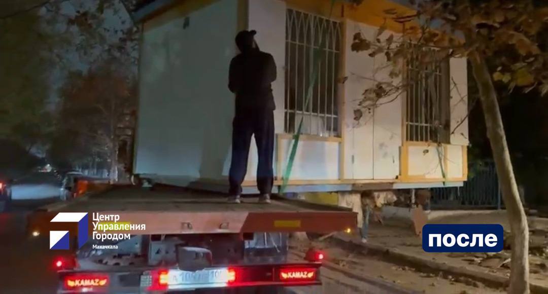 В Махачкале продолжают освобождать муниципальные земли от торговых объектов. Специалисты Управления торговли демонтировали самовольно установленные НТО на пр.И.Шамиля, 56.