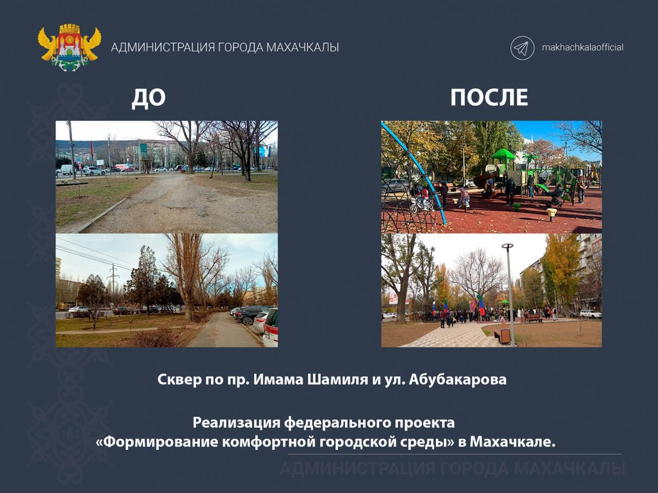“В основе проекта «Городская среда» партии «Единая Россия»лежит федеральная программа «Формирование комфортной городской среды», которая уже много лет меняет города Дагестана. В Махачкале мы видим заметный эффект: дворы, скверы, общественные территории становятся современными, удобными и безопасными. Это планомерная работа, и мы продолжим улучшать город шаг за шагом”, – отметит мэр Махачкалы Джамбулат Салавов.