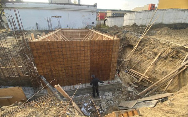 В настоящее время уже выполнена проведена заливка основания под будущее здание новой насосной станции, ведется монтаж опалубки для заливки стен будущего объекта.