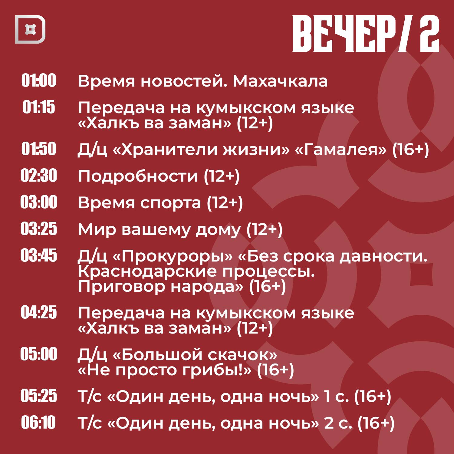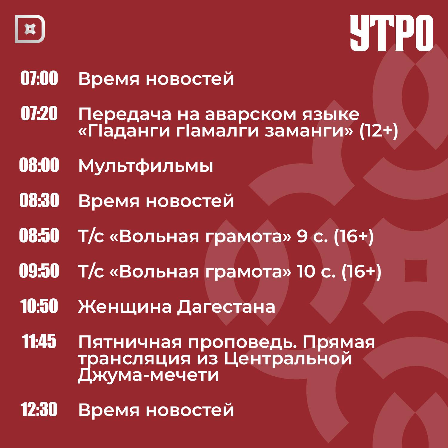 Телепрограмма РГВК «Дагестан» на сегодня