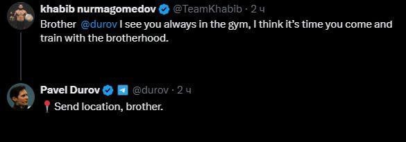 Создатель популярного мессенджера Telegram Павел Дуров ответил на предложение экс-чемпиона UFC Хабиба Нурмагомедова.