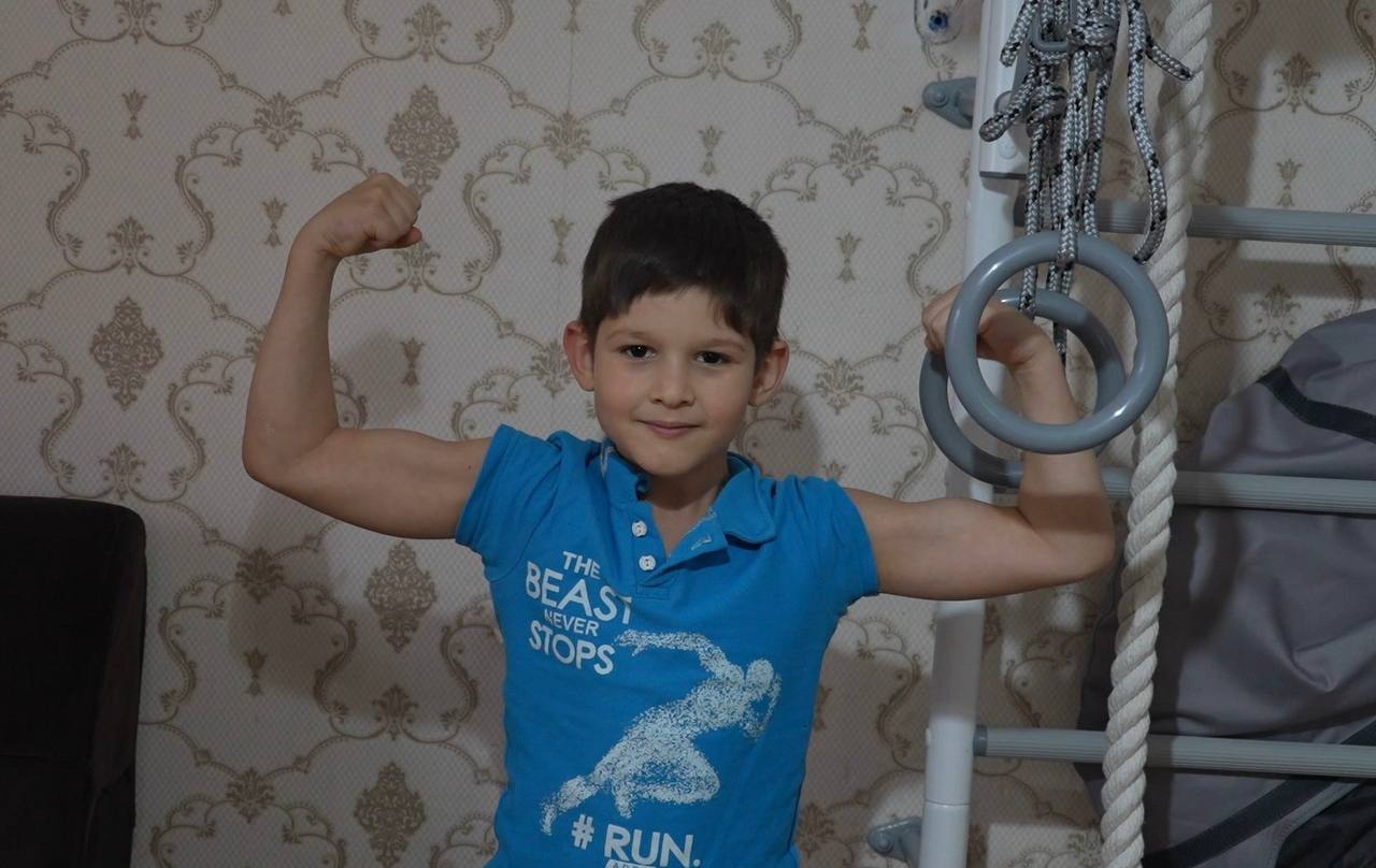 Мы встретились с семилетним Арсеном Панченко, чья семья переехала из Луганска в 2014 году. Ему вручили шведскую стенку. Арсен, который живёт в микрорайоне Кривая Балка и уже учится в первом классе, с большим воодушевлением показал нам свои умения и искренне обрадовался подарку.