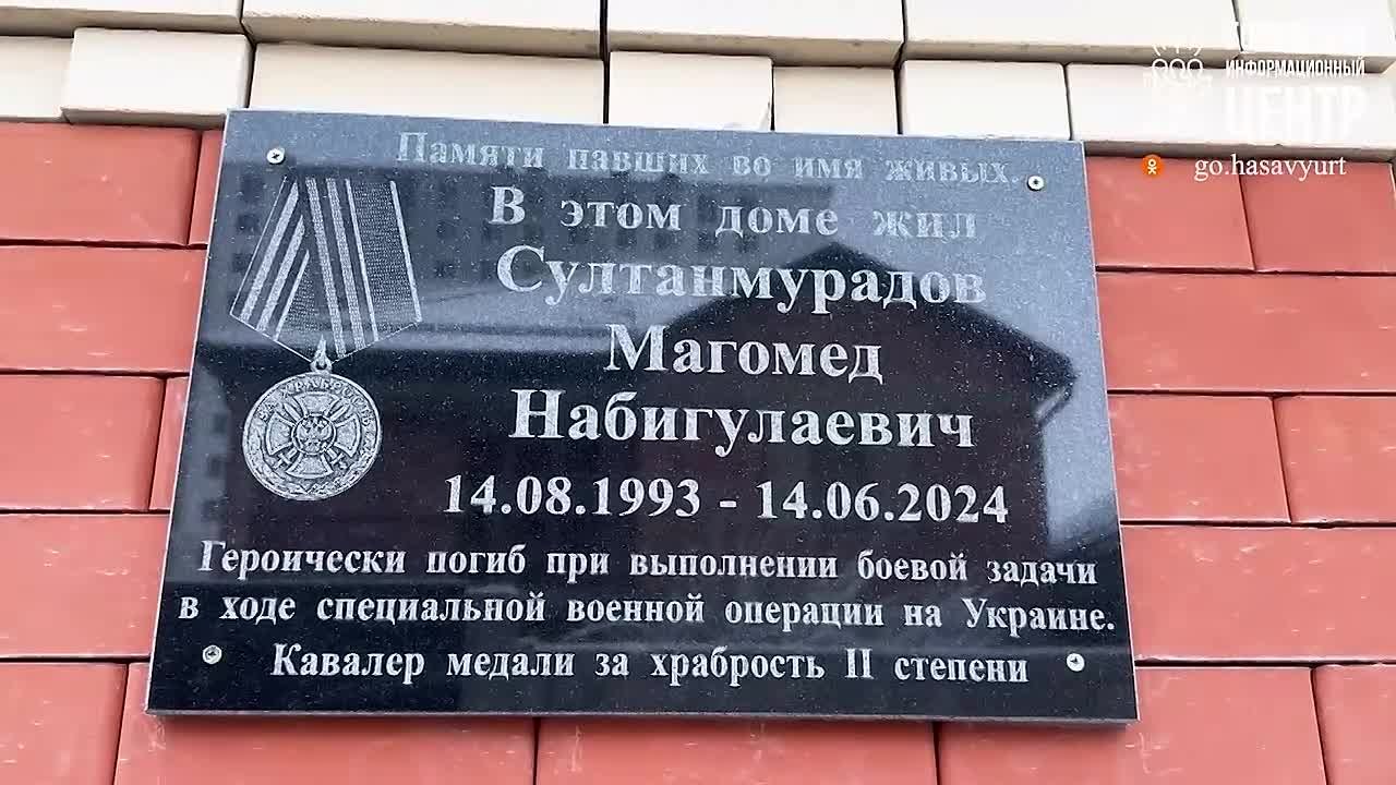 В Хасавюрте состоялось памятное мероприятие, посвящённое увековечению памяти погибшего участника специальной военной операции Магомеда Султанмурадова. Мемориальная плита установлена на доме, где проживал военнослужащий.