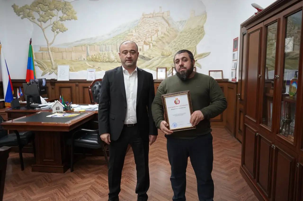 Глава Дербента Ханлар Пашабеков вручил благодарственные письма участникам формирования и сопровождения гуманитарного груза, направленного в зону специальной военной операции, и поблагодарил их за помощь в организации сбора и доставку помощи военнослужащим.