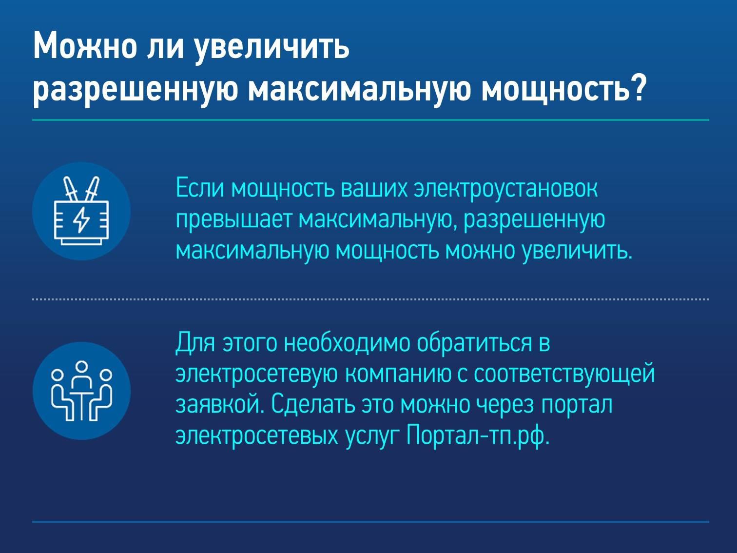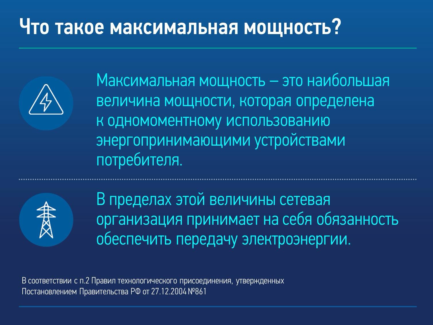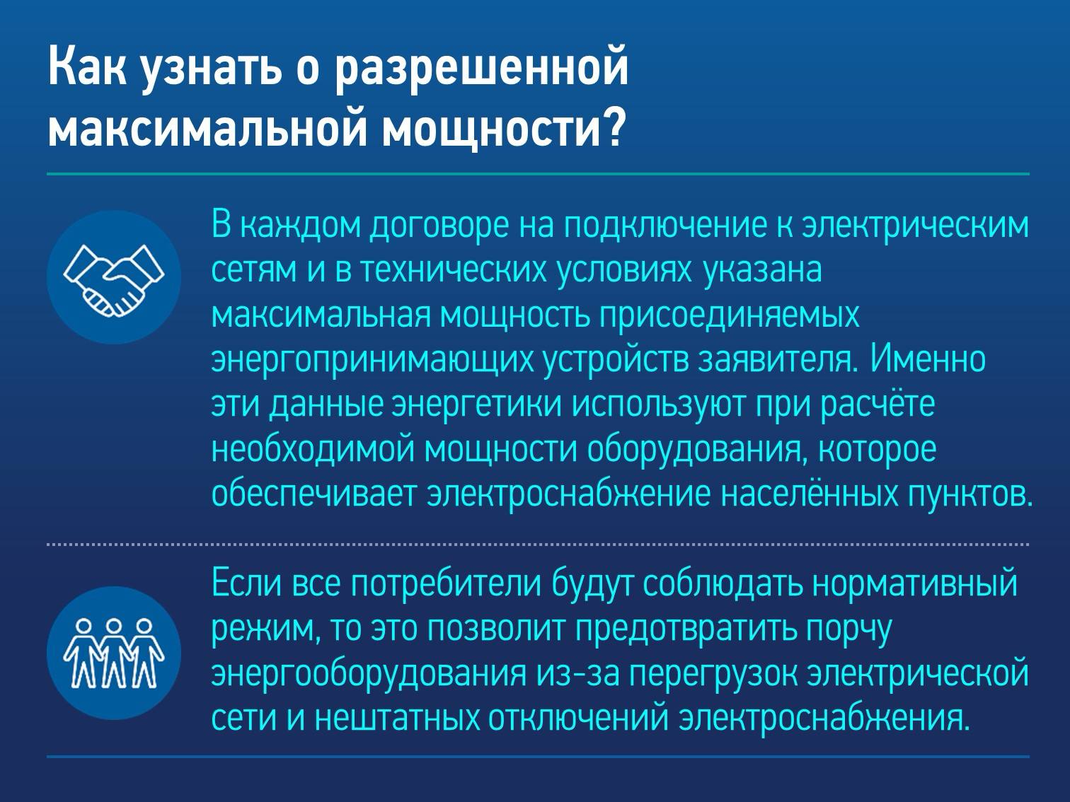 Превышение максимальной мощности энергопринимающего устройства является основанием для ограничения режима потребления.