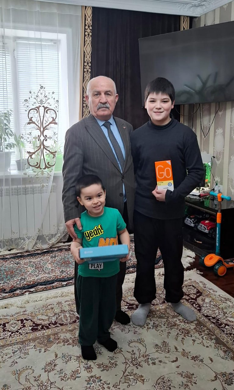 От имени депутата руководитель исполнительного комитета Дербентского районного отделения «Единой России» Нуритдин Мирзоев передал ребятам телефон и планшет, поздравил с наступающим праздником и пожелал им здоровья и успехов в учёбе.