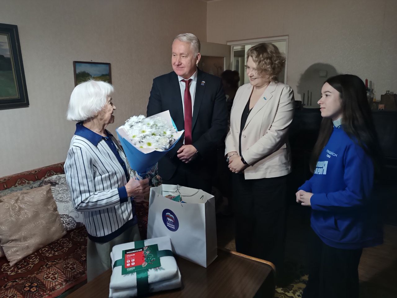 102-летнюю Антонину Погорелую поздравили новгородские единороссыы