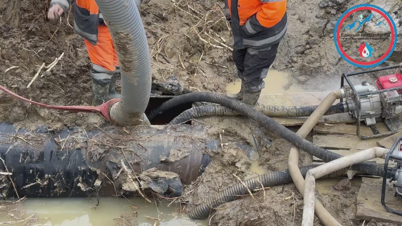 Информируем вас о том, что работы по устранению утечки на магистральном водоводе ведутся в круглосуточном режиме. Для обеспечения доступа к месту аварии был выкачан значительный объём воды.