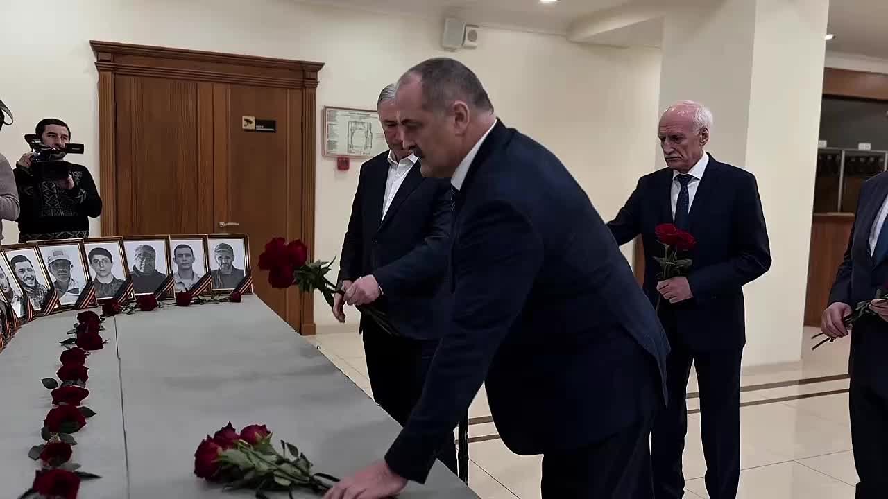 Глава региона возложил цветы у портретов погибших в спецоперации дагестанцев и почтил их память минутой молчания.