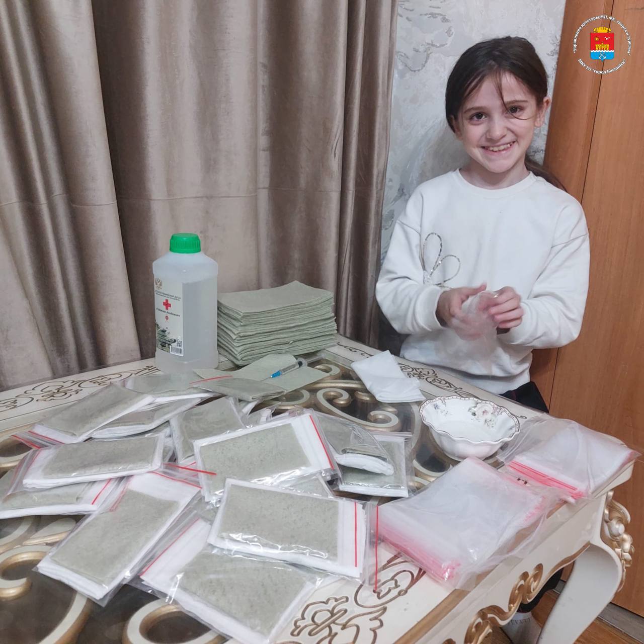 Арина Чамсулвараева, воспитанница Центра детского творчества и технического творчества города Каспийска, проявила инициативу и начала изготавливать "сухой душ" для участников специальной военной операции.