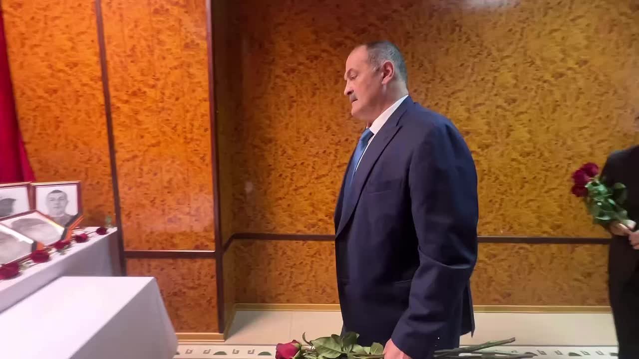 Глава республики возложил цветы к портретам погибших при исполнении задач бойцов и почтил их память минутой молчания.