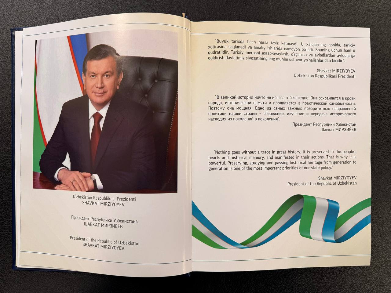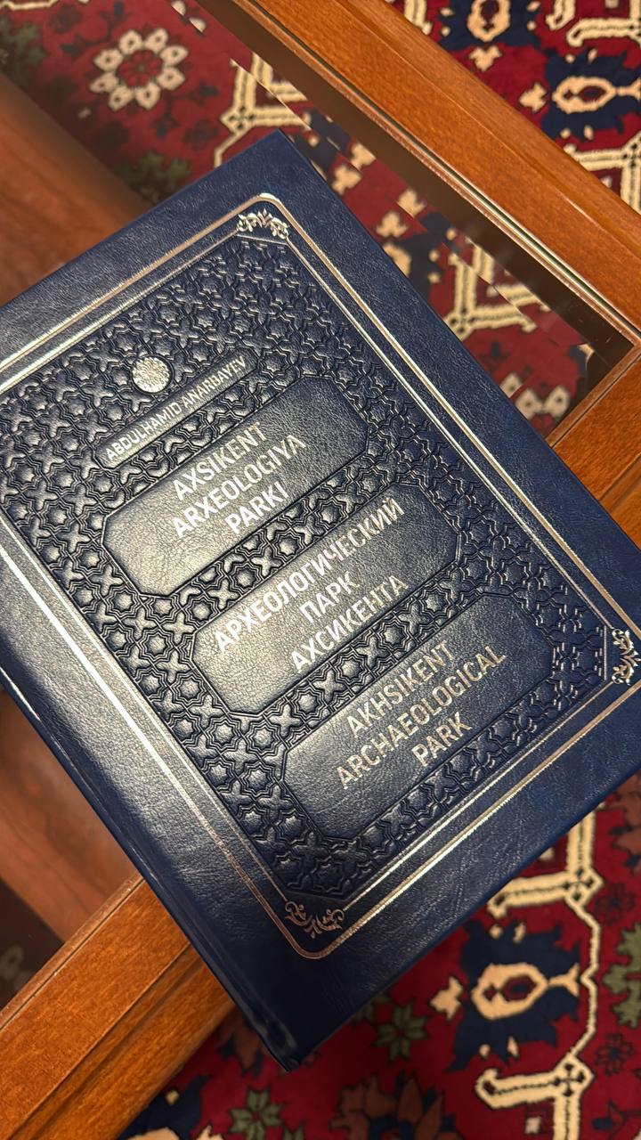Делегация Наманганской области Узбекистана на одной из площадок международного горного форума передала Сергею Меликову книгу-альбом «Археологический парк Ахсикент».