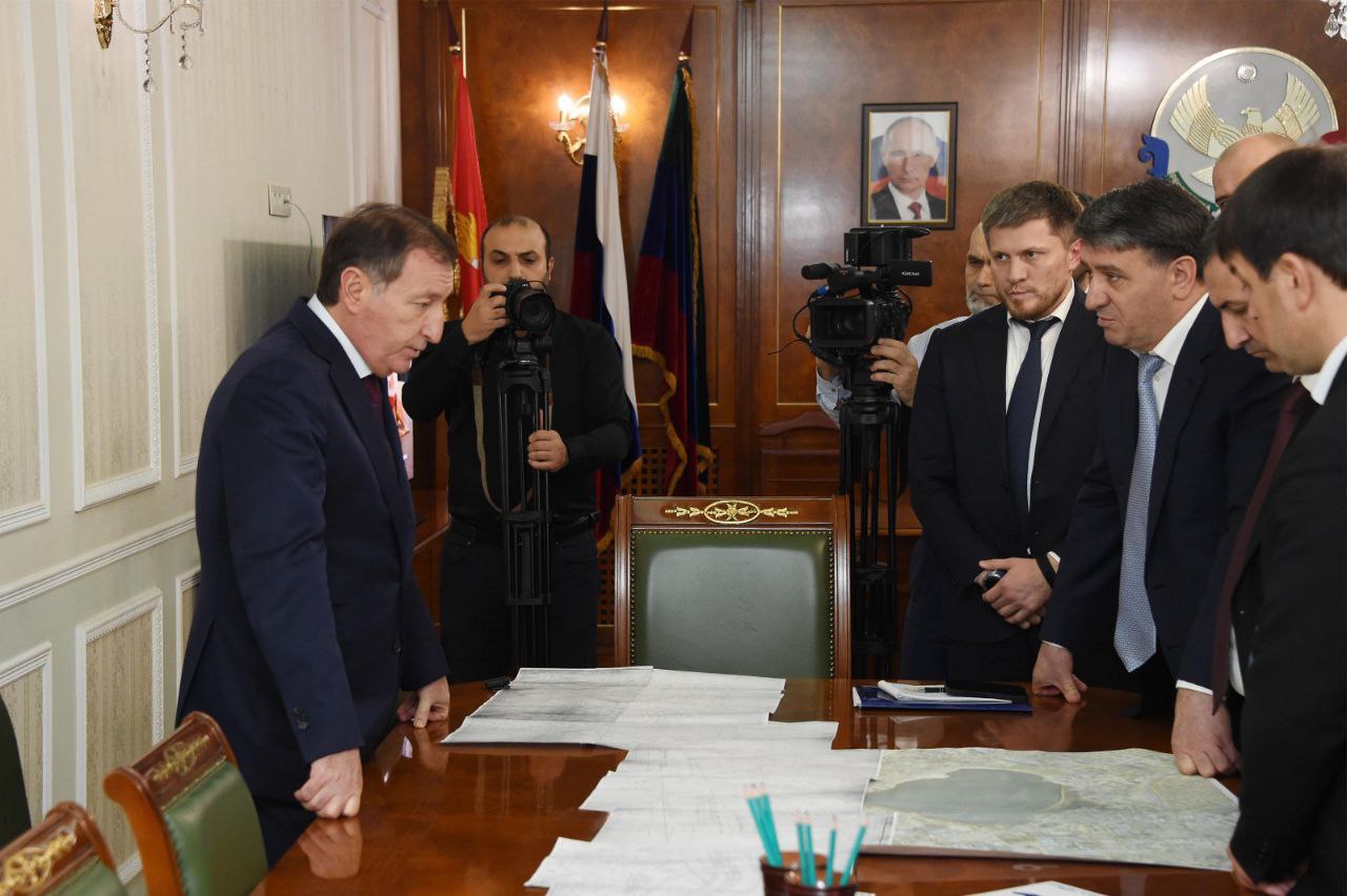 Сегодня в городской мэрии Председатель НС РД Заур Аскендеров рассмотрел вопросы строительства ливневой канализации с врип главы города Махачкалы Джамбулатом Салавовым.
