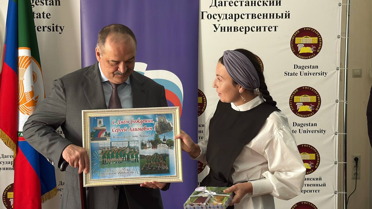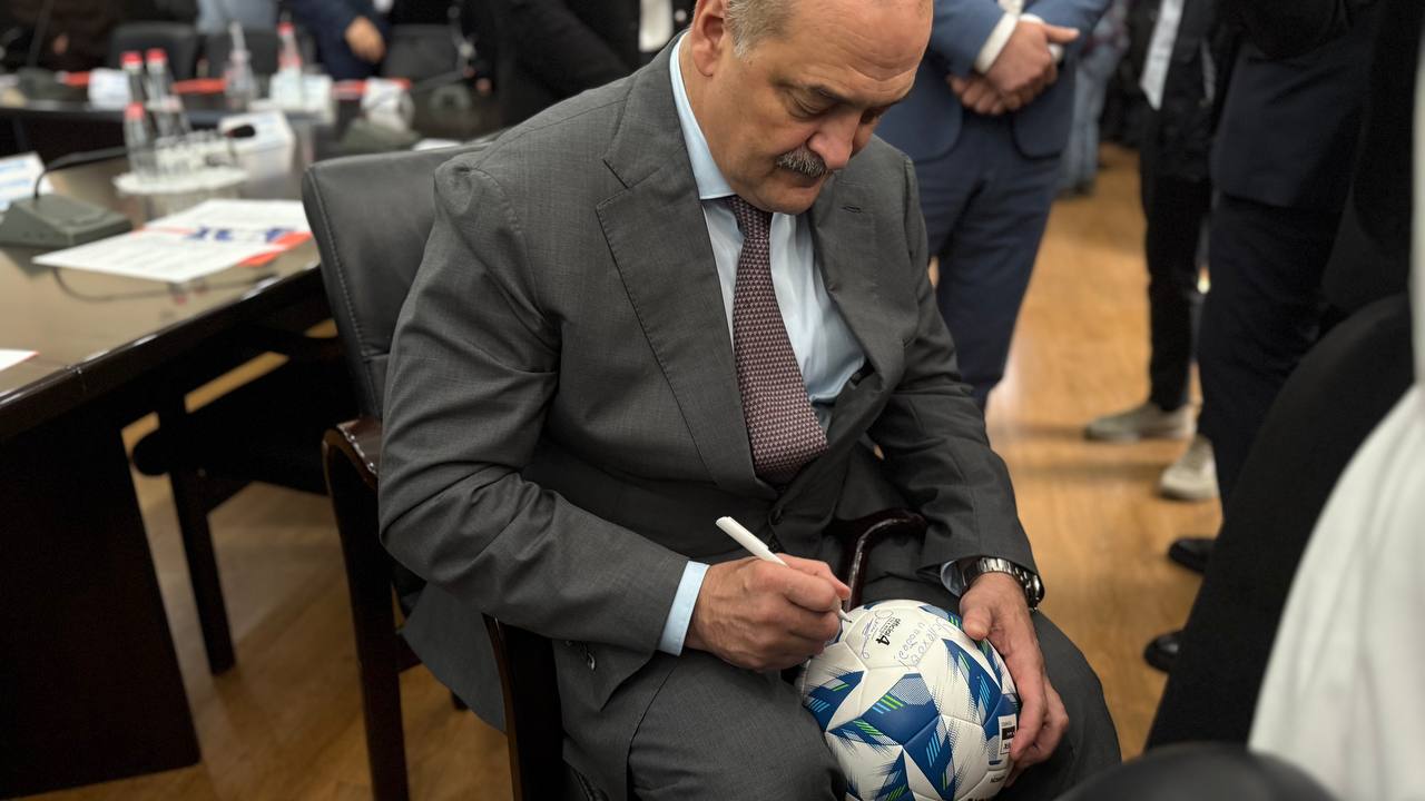 Кроме того, юные футболисты из Кизляра подарили главе Дагестана именную футболку. В свою очередь, Сергей Меликов написал напутствия на мяче будущих чемпионов.