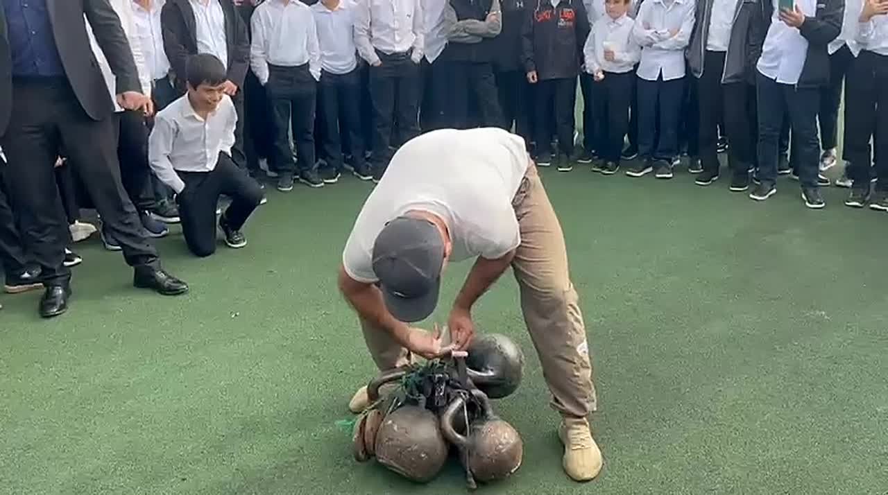 Сегодня Османов улучшил свое достижение, ему удалось поднять пальцем 140 кг. Свидетелями его рекорда стали учащиеся СОШ №49 г. Махачкалы, которые остались под большим впечатлением от увиденного.