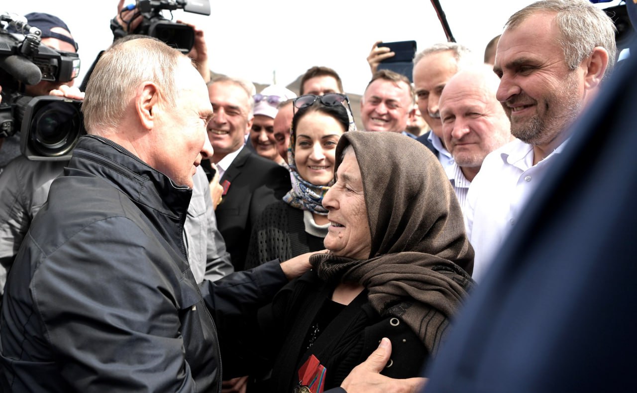 Президент пообщался с местными жителями, встретился с ополченцами, а также провел беседу с бывшим председателем Госсовета республики Магомедали Магомедовым, обсудив перспективы развития региона.