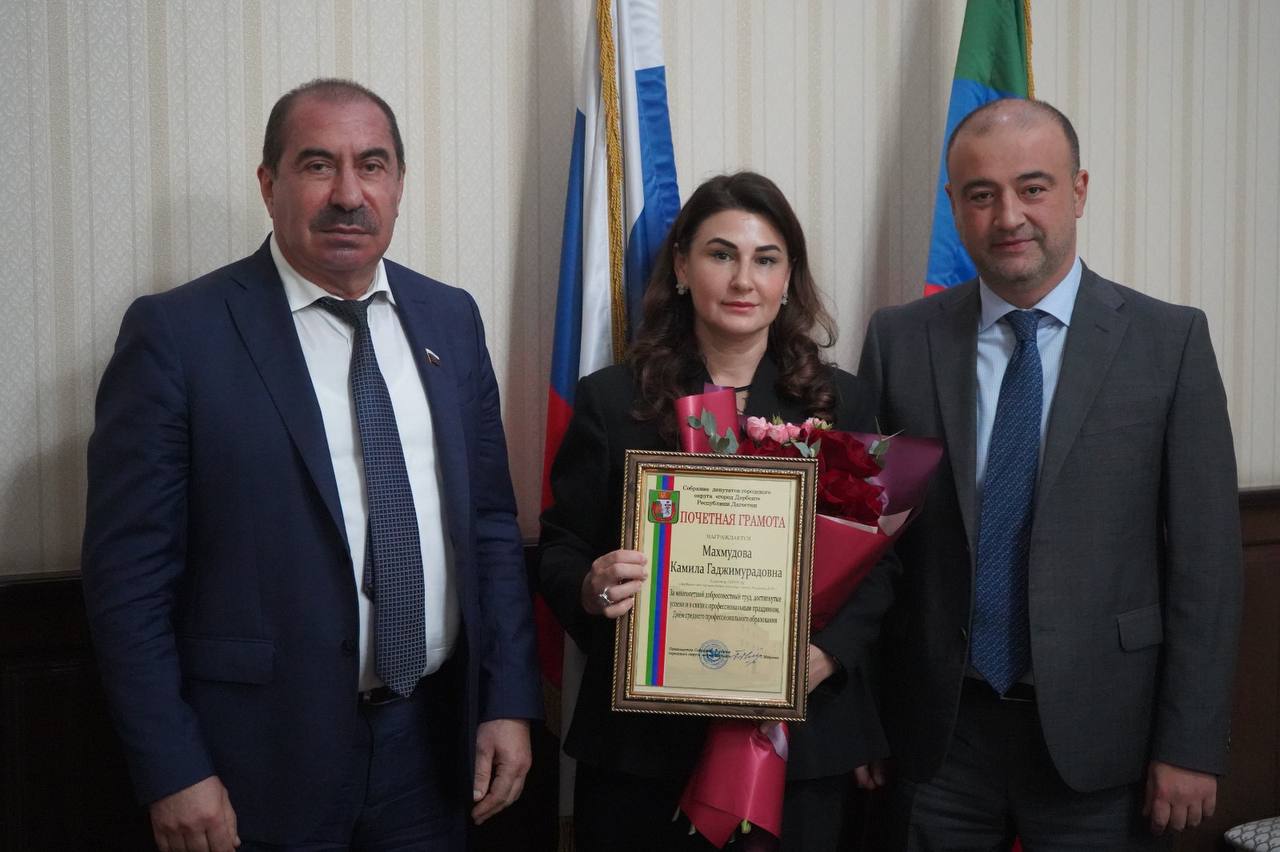 За многолетний добросовестный труд, высокий профессионализм и в связи с профессиональным праздником, Днём среднего профессионального образования, Почетной грамотой Собрания депутатов ГО «город Дербент» награждена директор ГБ ПОУ РД «Дербентское музыкальное училище им. Ашурова Д.Ш.», заслуженный работник культуры РД Махмудова Камила Гаджимурадовна.