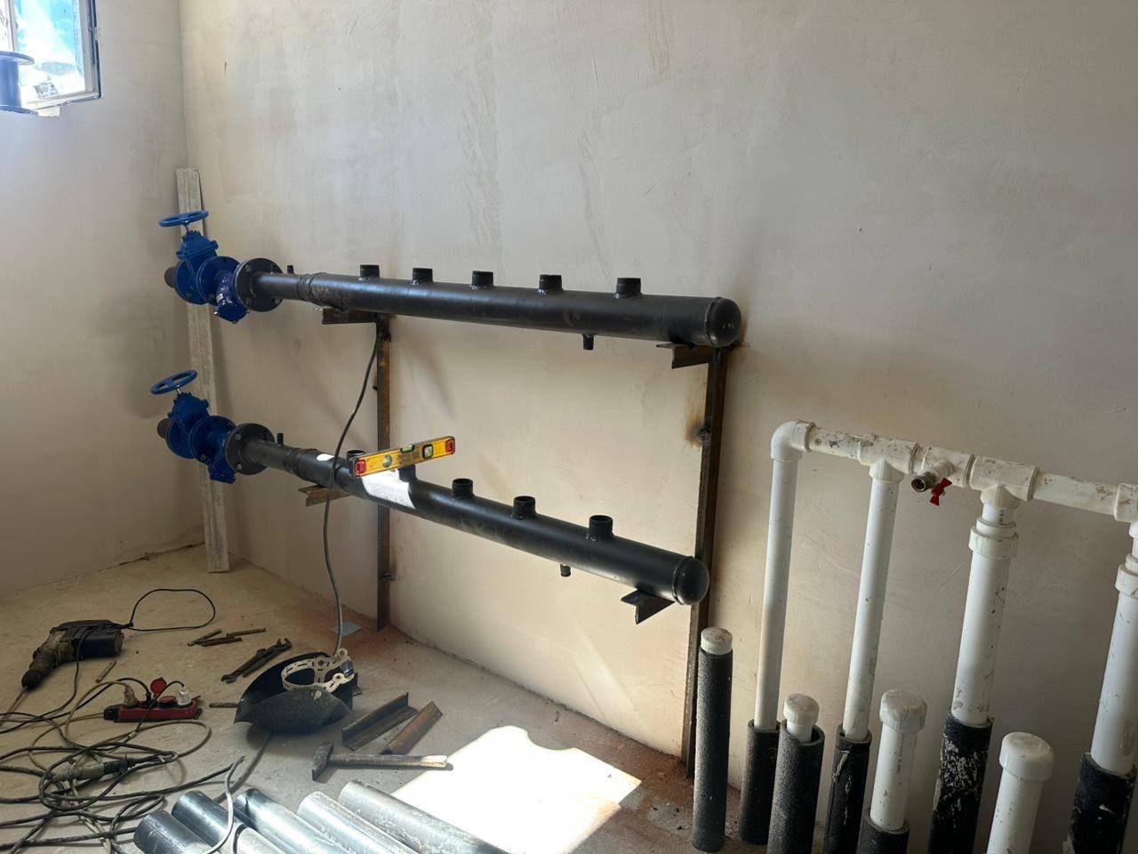 Одновременно с этим ведутся работы по подготовке основания будущих пожарных резервуаров и коммуникациям к ним.