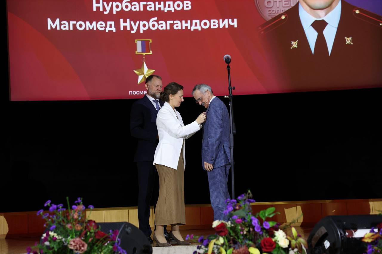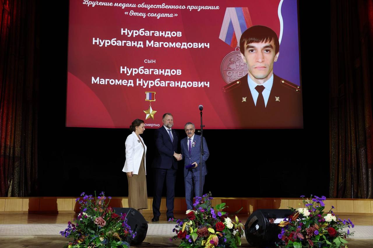 Медалью «Отец солдата» были награждены 21 отец в номинациях «За личный пример» и «За воспитание защитника Отечества». В их числе – Нурбаганд Нурбагандов, отец Героя России Магомеда Нурбагандова, депутат Госдумы РФ.
