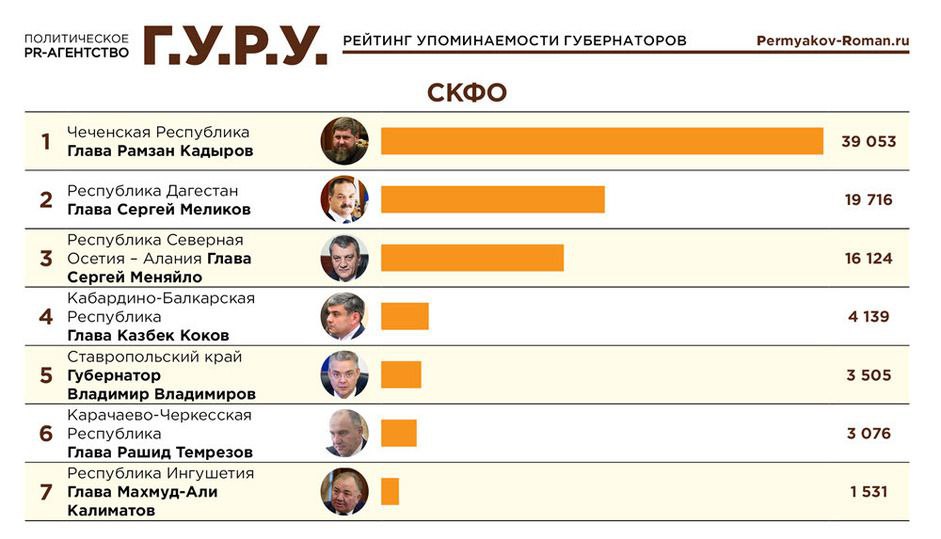 Сергей Меликов, глава Дагестана, занял второе место по упоминаемости в Telegram среди губернаторов СКФО в сентябре 2025 года, согласно исследованию аналитического центра «Г.У.Р.У.». Его имя упоминалось 19 716 раз, что позволило ему занять 14-е место в общероссийском рейтинге.