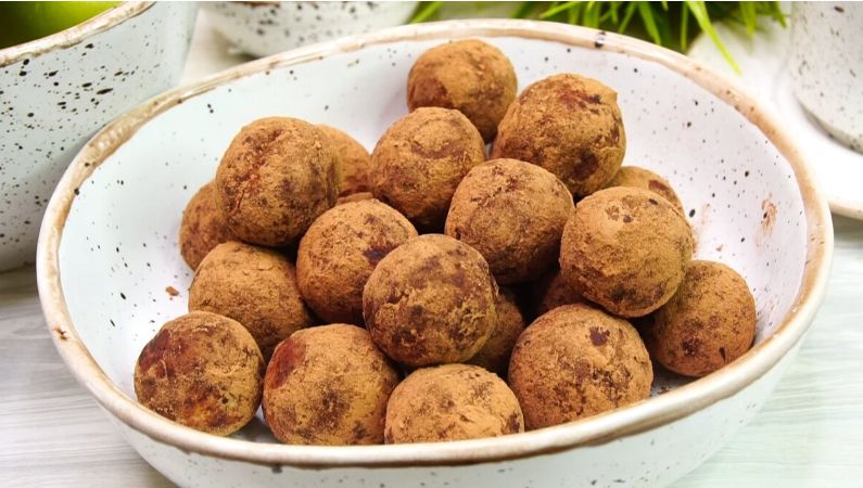 Когда масса стала однородной и пластичной, приступайте к формированию конфет. Отщипнув небольшие кусочки, скатайте их в шарики. После этого обваляйте каждый в какао-порошке. Эти сладкие комки уложите на тарелку и отправьте в холодильник, чтобы они немного охладились и стали более приятными на вкус.