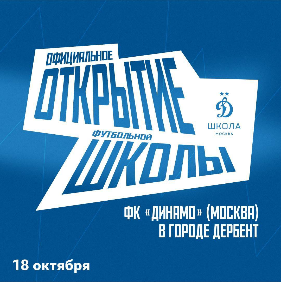 Уже в эту субботу, 18 октября, состоится официальное открытие футбольной школы ФК «Динамо» (Москва) в Дербенте!