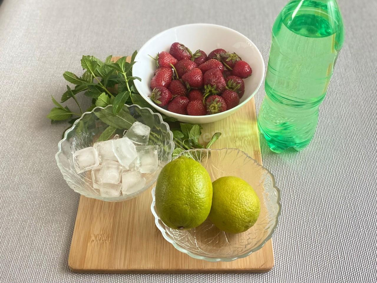 Шаг 1: Перед началом приготовления нужно тщательно подготовить все ингредиенты. Клубнику, лаймы и мяту необходимо промыть и обсушить. Несколько ягод клубники и листочков мяты пригодятся для украшения готового напитка.