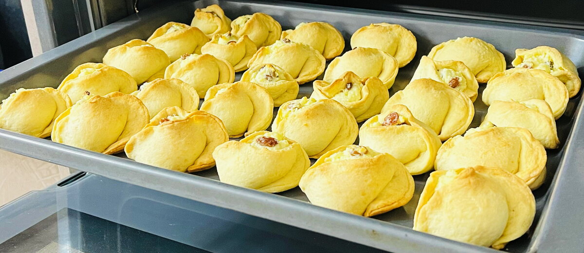После того как тесто отдохнуло, его раскатывают в тонкий пласт и вырезают круглые заготовки. В центр каждой из них выкладывается начинка, а края формируются в виде лодочек с отверстием сверху. Таким образом, печенье приобретает интересный вид и позволяет начинке немного выйти во время выпекания.